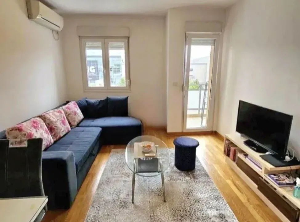 Furnished one-bedroom apartment 42m2 for rent in Zabjelo. The building is located in the immediate vicinity of Multicom, it was recently built, it has its own parking, video surveillance, alarm sister