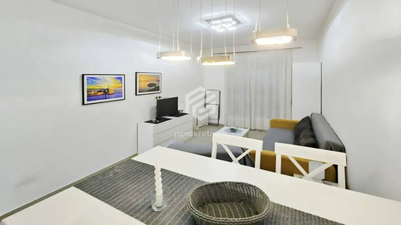 Garsonjera je veoma lijepo uređena i prilagođena samcima ili parovima za život. Nalazi se preko puta SC Morača, što predstavlja ekskluzivnu lokaciju u Podgorici. Takođe, stan posjeduje i terasu. Extra