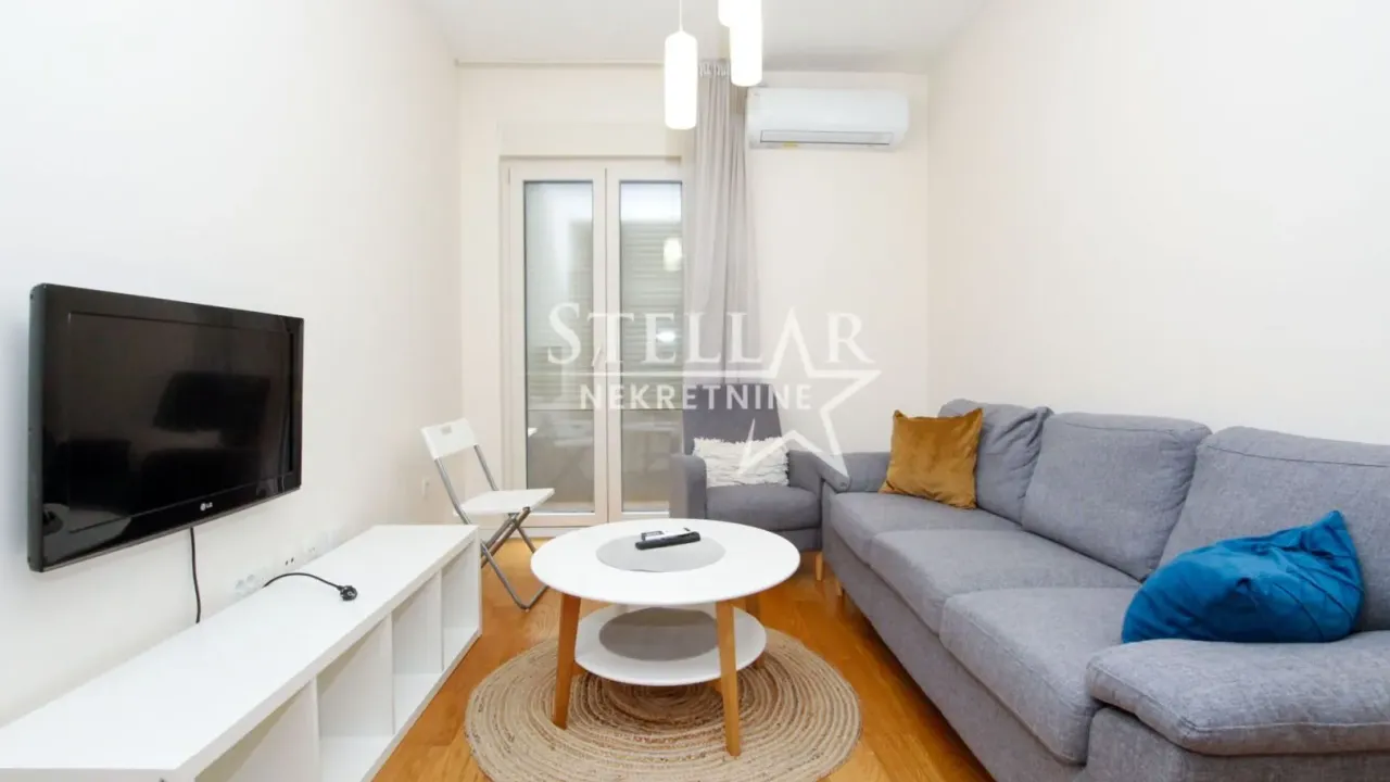 Izdaje se luksuzan jednosoban stan smješten na prvom spratu zgrade Linea. Struktura: Dnevna soba sa izlazom na terasu, trpezarija i kuhinja otvorenog tipa, spavaća soba sa izlazom na terasu, ulazni...