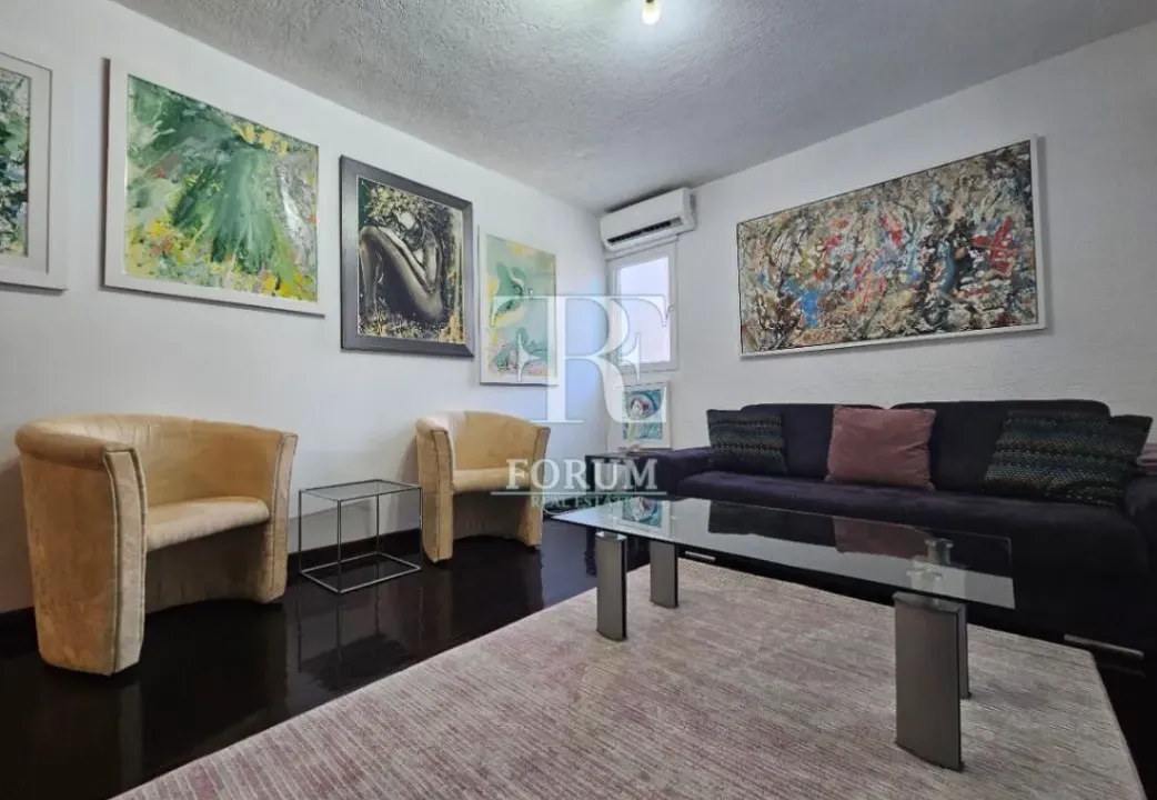 Za izdavanje dvosoban stan na odlicnoj lokaciji, kompleks "Central Point". Stan je povrsine 75m2 i pozicioniran je na sestom spratu nove zgrade koja posjeduje dva lifta. U cijenu je uracunato i garazn