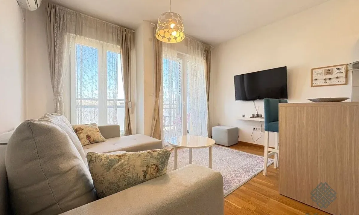 Izdaje se moderno opremljen dvosoban stan, površine 60m2, u elitnom kompleksu Gorica Residence, Atinska 47. Stan je pozicioniran na 1.spratu i čine ga: Ulazni hodnik, kupatilo, dvije spavaće sobe,...