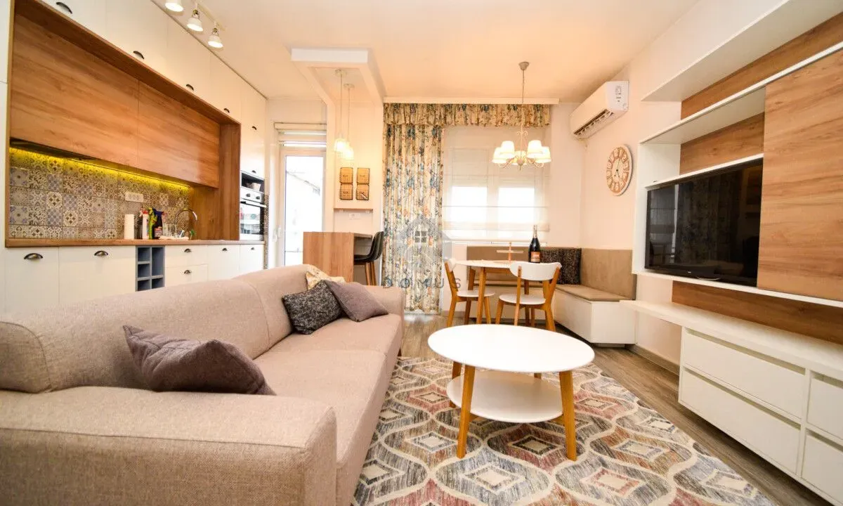 Property Description A luxuriously furnished one-bedroom apartment of 48 m² is available for rent in Preko Morače, one of the most sought-after locations in the city, on 13. Jula Street. The apartment