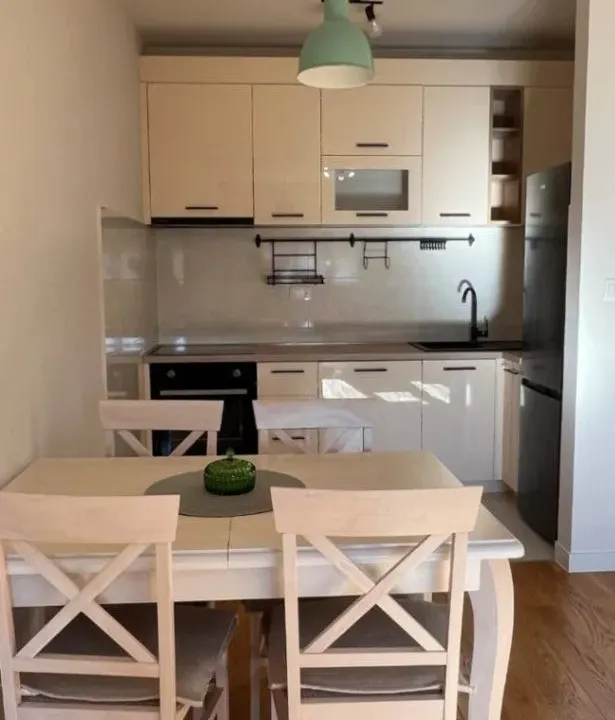 Prodaje se potpuno namješten stan od 40 kvadratnih metara na petom spratu modernog kompleksa Central Point u ulici Marka Radovića 103, Podgorica. Stan se odlikuje visokokvalitetnom završnom obradom i