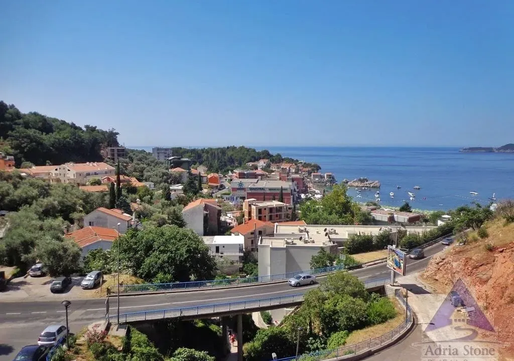 Potpuno namješten 2-soban stan sa pogledom na more i dizajnerskim enterijerom u strogom centru Budve, na samo nekoliko koraka od rive, Starog grada Budve i marine za jahte. Stan je uknjižen kao poslov