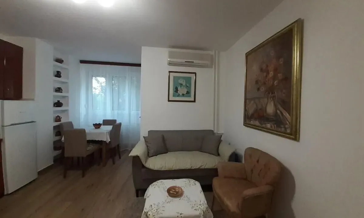 Renoviran i kompletno opremljen stan na odličnoj lokaciji, u blizini Starog Merkatora i Hotela Jugoslavija, odlična infrastruktura, blizina gradskog prevoza, škole, vrtića Prostorije: hodnik, dnevna s