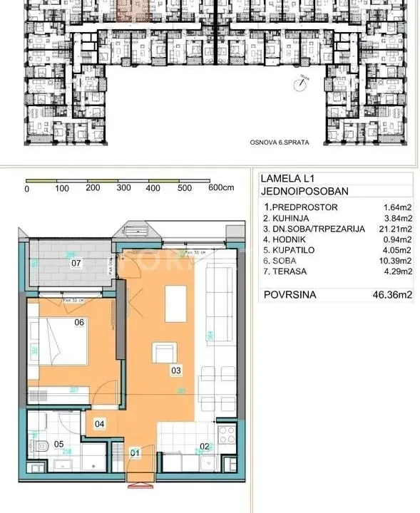 Prodaje se dvoiposoban stan u moderno dizajniranoj novogradnji na Trošarini. Površine je 44,47m2, nalazi na II spratu zgrade spratnosti Po+P+3 sa liftom. Stan je funkcionalnog rasporeda, sastoji se iz