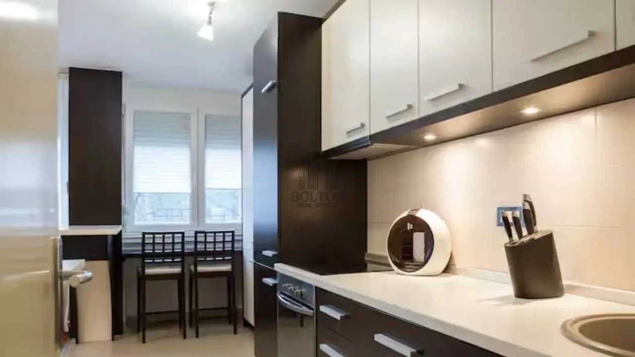 Udoban, kompletno namešten i luksuzno renoviran, jednoiposoban stan površine 35m2 na Dorćolu, u mirnoj jednosmernoj ulici Komnen Barjaktara, kroz koju ne prolazi gradski saobraćaj. Udaljen je oko 800m
