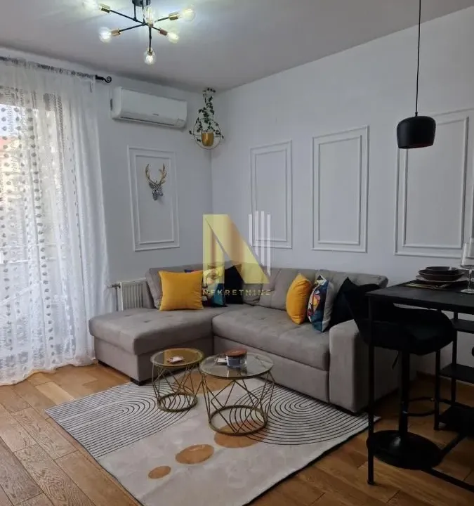Izdajem nov, moderan jednoiposoban stan površine 40 m², koji se nalazi na trećem spratu zgrade bez lifta. Ulazi se u manji hodnik iz kojeg se ulazi u spavaću sobu sa francuskim ležajem. Stan ima...